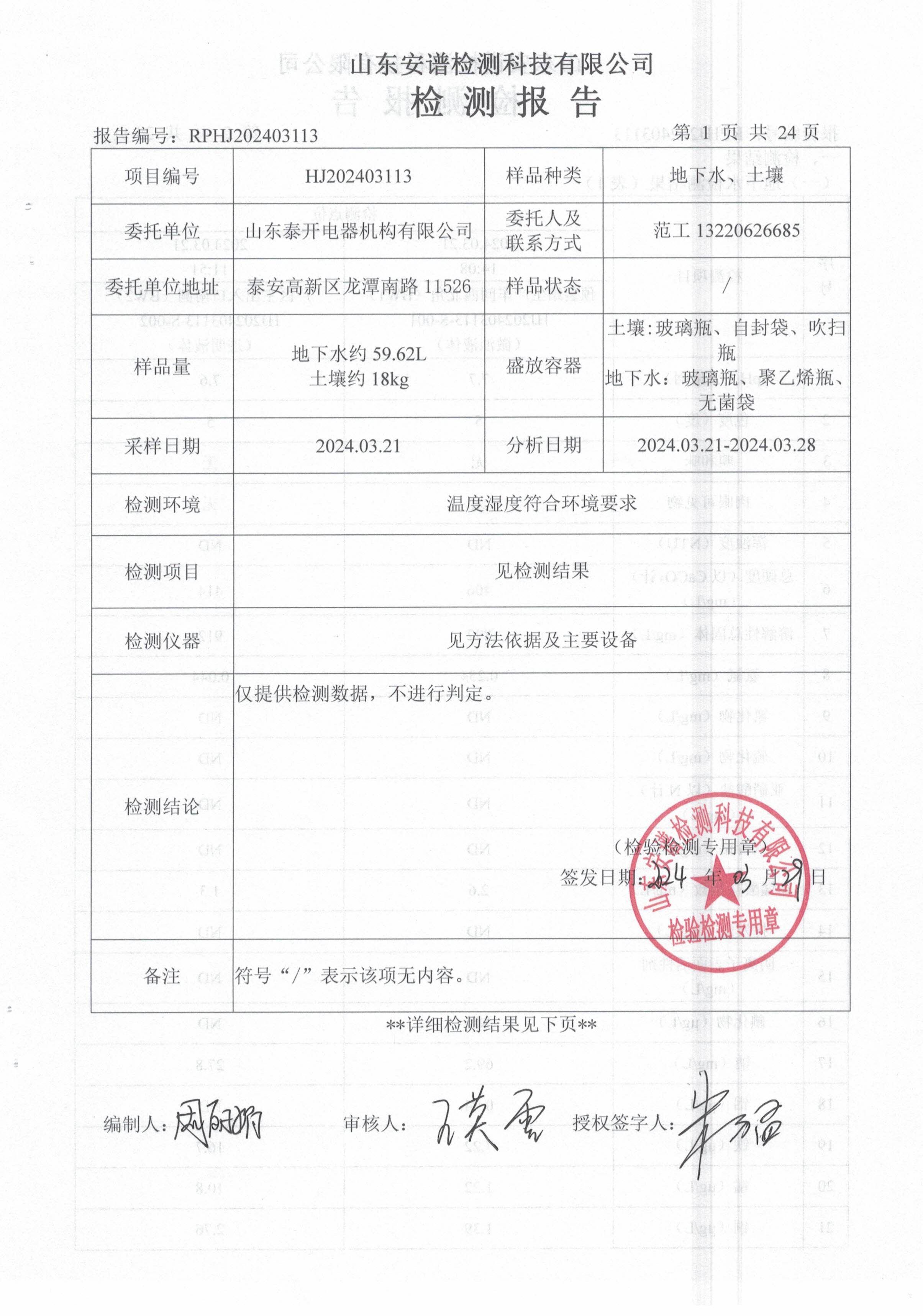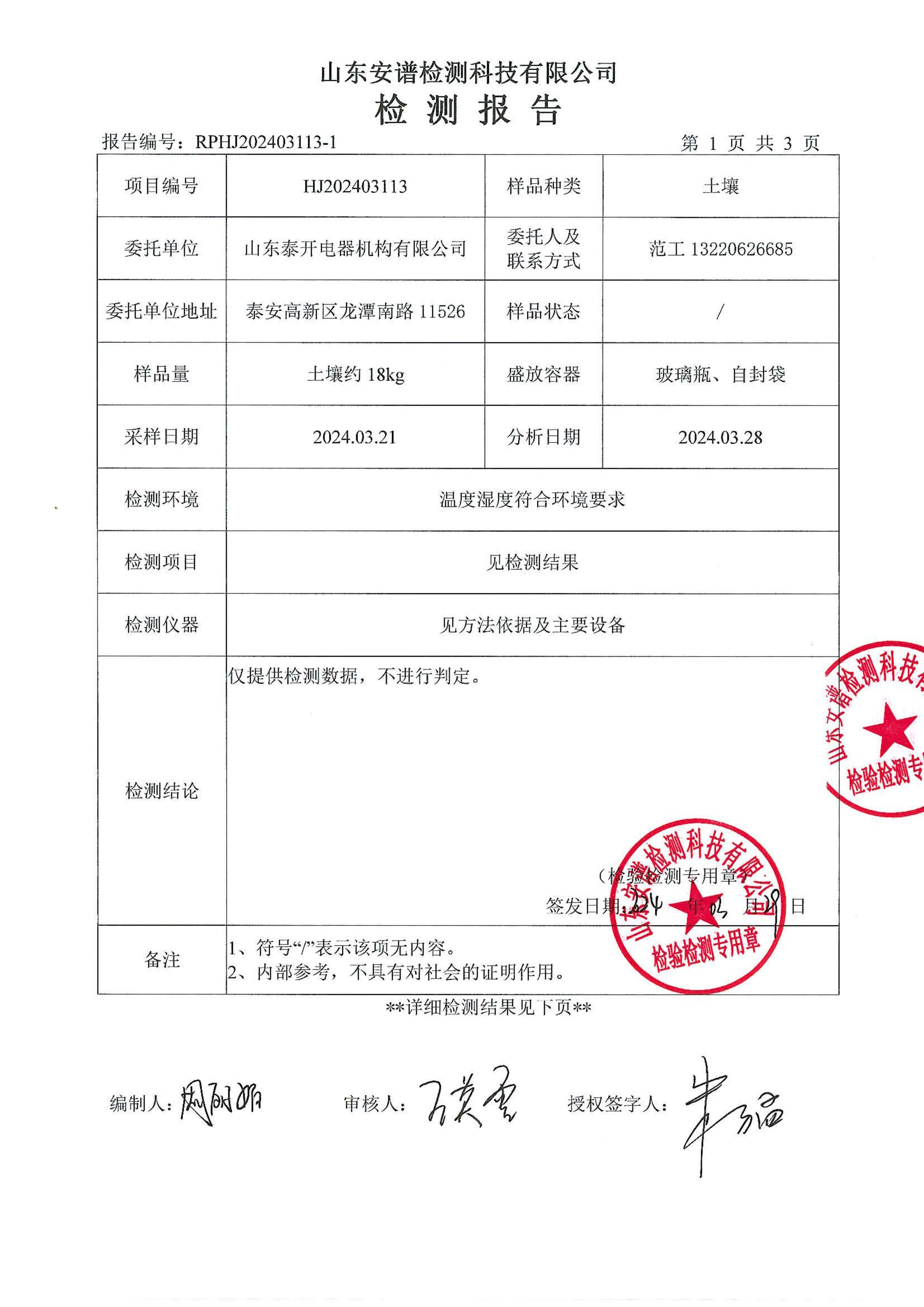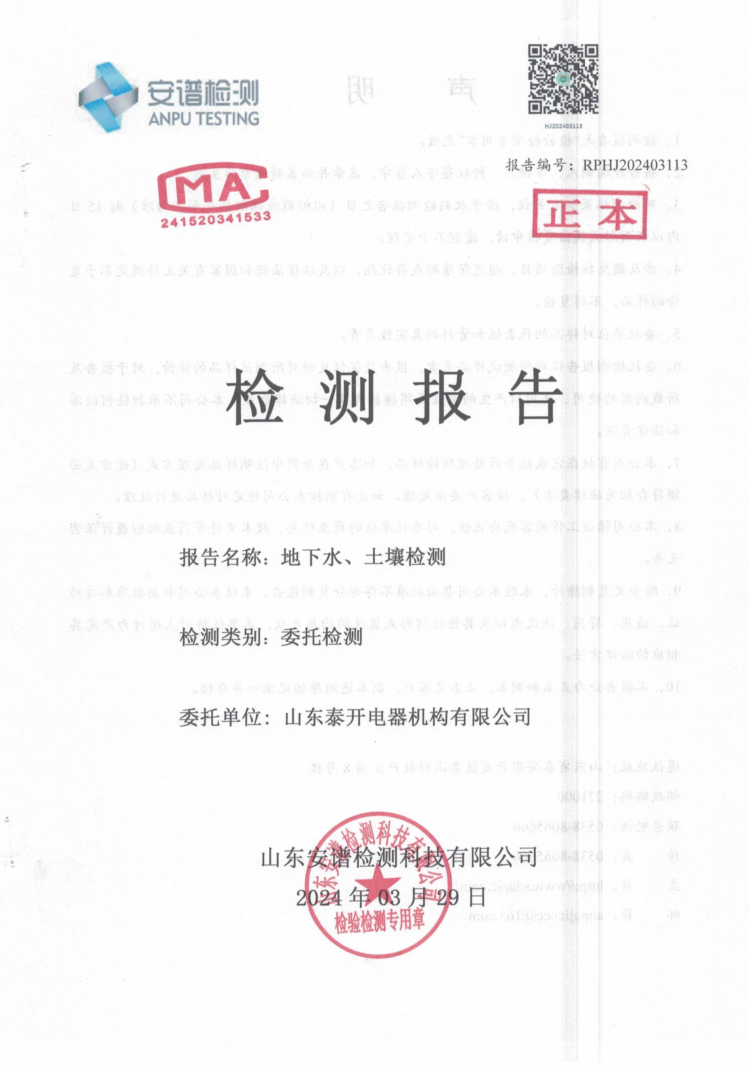 山东泰开电器绝缘有限公司废气、噪声检测